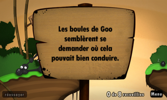La mécanique de jeu repose sur la physique, permettant aux joueurs d'expérimenter avec différentes constructions et d'apprendre de leurs erreurs. Les contrôles sont intuitifs, ce qui rend le jeu accessible à tous les âges. World of Goo se distingue par son ambiance sonore immersive et son esthétique visuelle séduisante, créant un univers ludique qui incite à la résolution de problèmes et à la découverte.